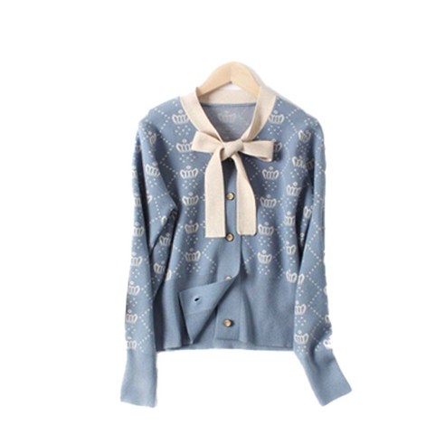 페이퍼먼츠 여성용 크라운 리본 넥 긴팔 니트 가디건 00596